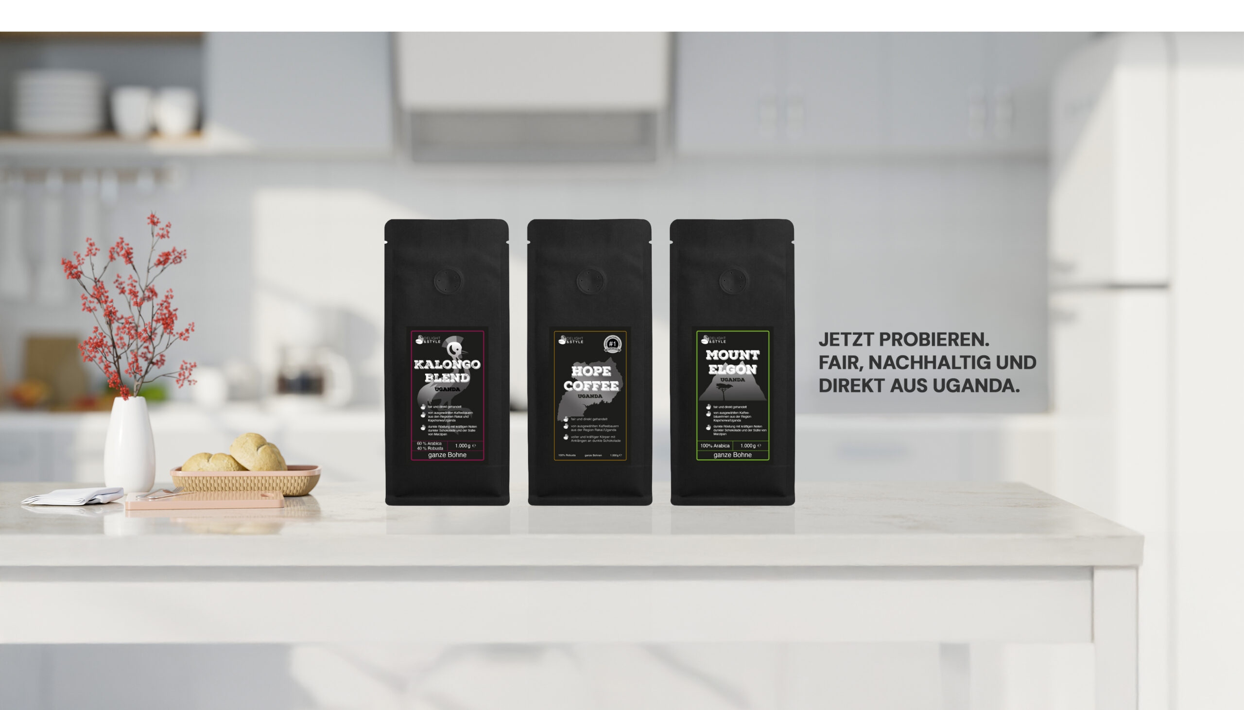 Entspannen Sie für einen Moment. Genießen Sie das eindrucksvolle, würzige Aroma von afrikanischem Kaffee. Hope Coffee Uganda – 100% Nachhaltigkeit. 100% Qualität. 100% Geschmack.